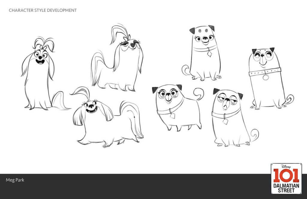 Character Designs de Meg Park para 101 Dalmatian Street